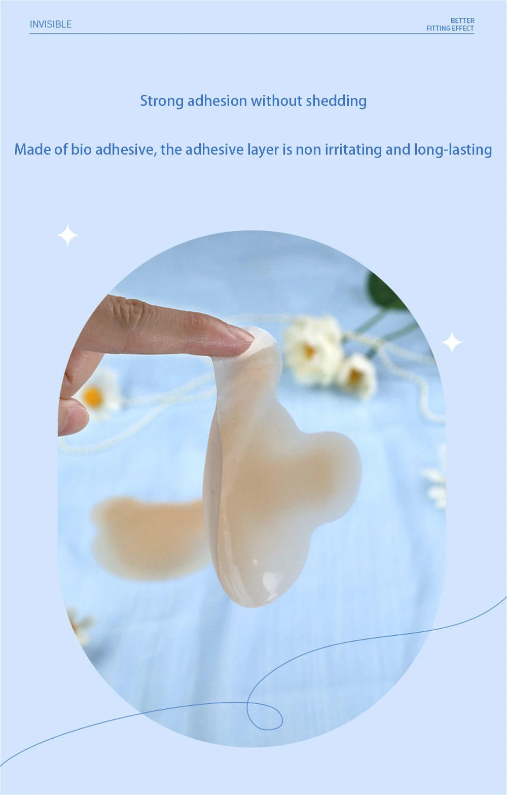 1. Silicone material, plant viscose, strong viscosity, no glue, and not easy to allergy.